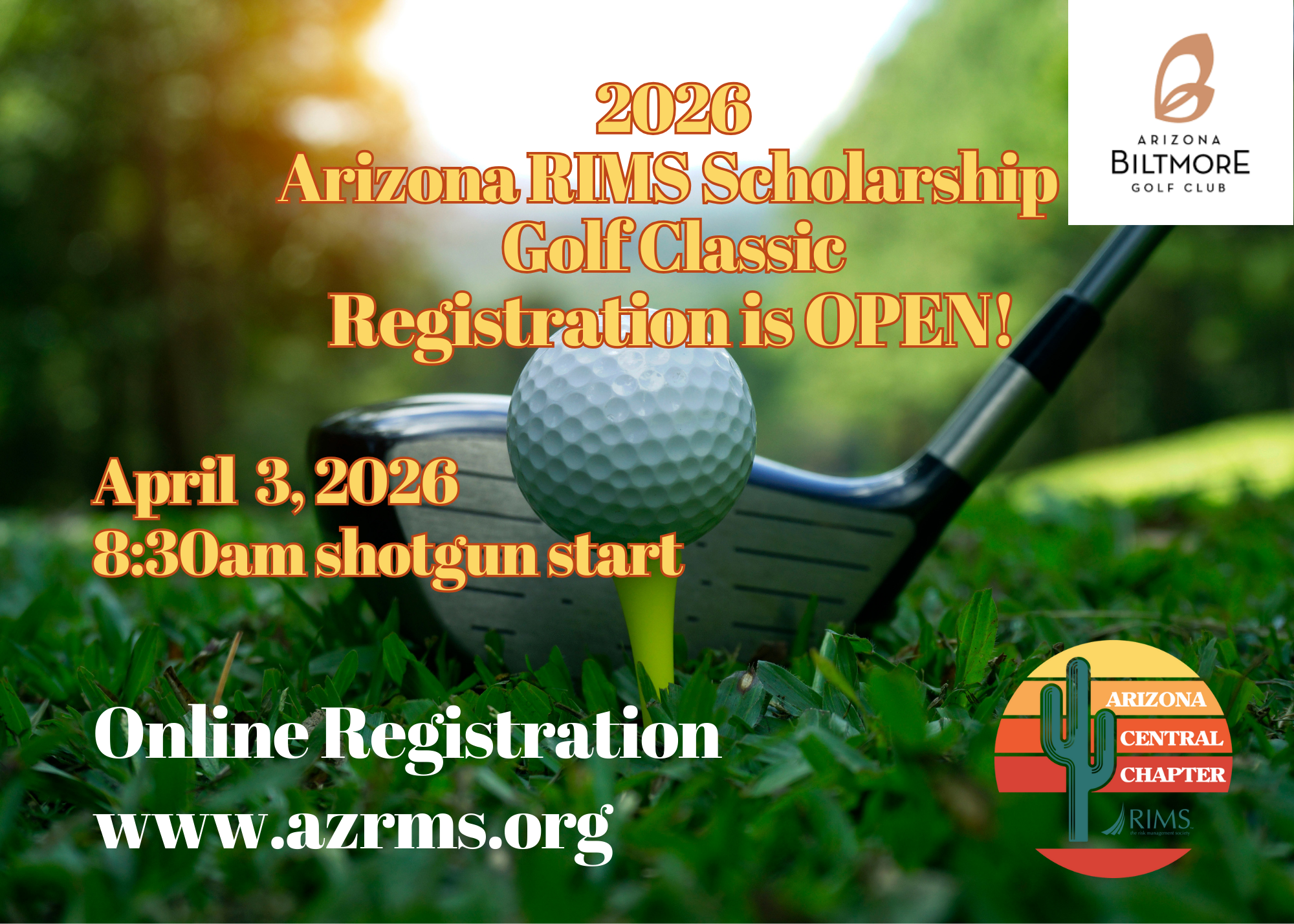Arizona Biltmore Estates Course2400 Biltmore EstatesPhoenix, AZ 85016Registration opens 6:30 amShot-gun start at 8:30 am sharp! Disclaimer: Please note that when registering for RIMS events, you acknowledge and agree that; photos/videos taken during the event may include your image and may be used for promotional purposes on our website, social media, and marketing materials